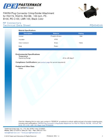 any representation or warranty regarding the suitability of the part described herein for any particular purpose, and Pasternack does not assume any liability arising out of the use of any part or documentation.