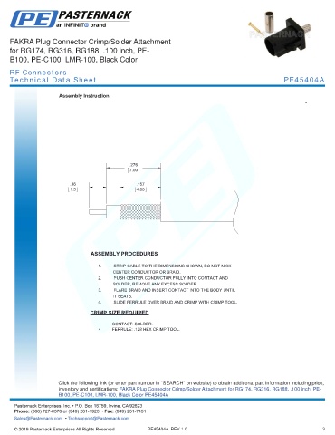 any representation or warranty regarding the suitability of the part described herein for any particular purpose, and Pasternack does not assume any liability arising out of the use of any part or documentation.