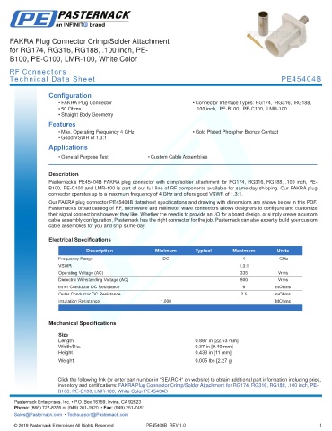 any representation or warranty regarding the suitability of the part described herein for any particular purpose, and Pasternack does not assume any liability arising out of the use of any part or documentation.
