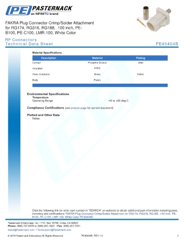 B100, PE-C100, LMR-100, White Color PE45404B Pasternack does not make