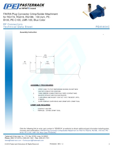 any representation or warranty regarding the suitability of the part described herein for any particular purpose, and Pasternack does not assume any liability arising out of the use of any part or documentation.