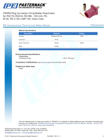 RF Connectors Technical Data Sheet PE45404H