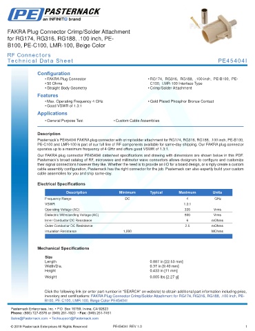 B100, PE-C100, LMR-100, Beige Color PE45404I Pasternack does not make