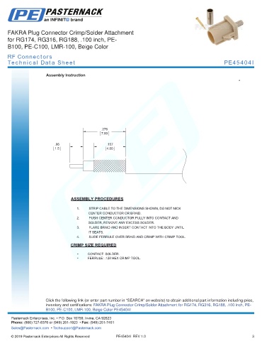 any representation or warranty regarding the suitability of the part described herein for any particular purpose, and Pasternack does not assume any liability arising out of the use of any part or documentation.