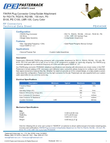 any representation or warranty regarding the suitability of the part described herein for any particular purpose, and Pasternack does not assume any liability arising out of the use of any part or documentation.