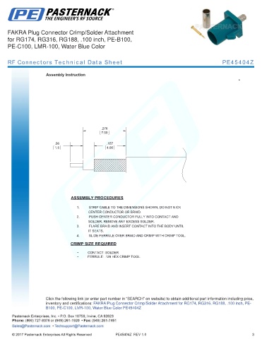 RF Connectors Technical Data Sheet PE45404Z