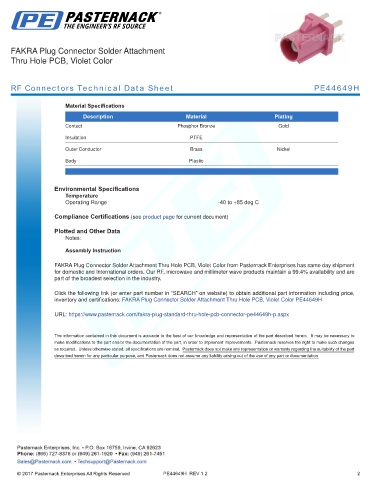 inventory and certifications: FAKRA Plug Connector Solder Attachment Thru Hole PCB, Violet Color PE44649H