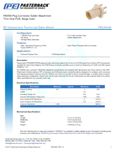 Pasternack’s PE44649I FAKRA plug connector with solder attachment for thru hole PCB is part of our full line of RF components
