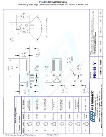 PE44651B CAD Drawing FAKRA Plug Right Angle Connector Solder Attachment Thru Hole PCB, White Color © 2013 Pasternack Enterprises All Rights Reserved PE44651B REV 01 3