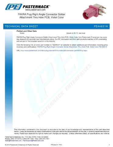 inventory and certifications: FAKRA Plug Right Angle Connector Solder Attachment Thru Hole PCB, Violet Color PE44651H