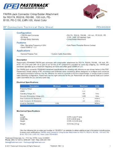 RF Connectors Technical Data Sheet PE44646H