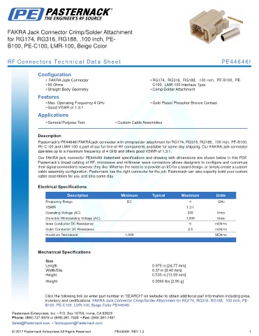 RF Connectors Technical Data Sheet PE44646I