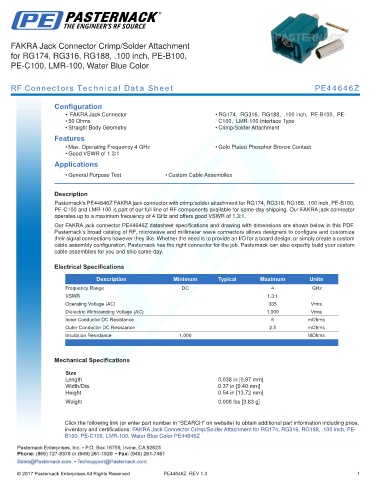 RF Connectors Technical Data Sheet PE44646Z