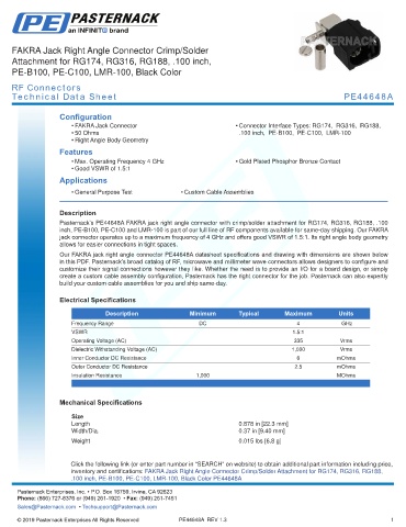 in this PDF. Pasternack’s broad catalog of RF, microwave and millimeter wave connectors allows designers to configure and