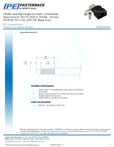 any representation or warranty regarding the suitability of the part described herein for any particular purpose, and Pasternack does not assume any liability arising out of the use of any part or documentation.