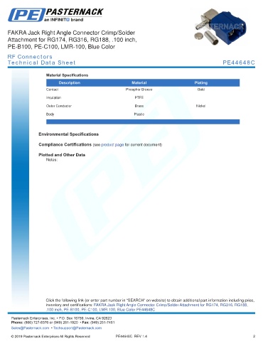 any representation or warranty regarding the suitability of the part described herein for any particular purpose, and Pasternack does not assume any liability arising out of the use of any part or documentation.