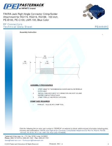 .100 inch, PE-B100, PE-C100, LMR-100, Blue Color PE44648C Pasternack does not make