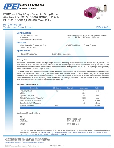 .100 inch, PE-B100, PE-C100, LMR-100, Violet Color PE44648H Pasternack does not make