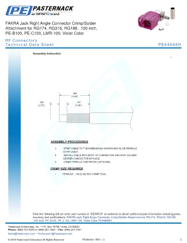 .100 inch, PE-B100, PE-C100, LMR-100, Violet Color PE44648H Pasternack does not make