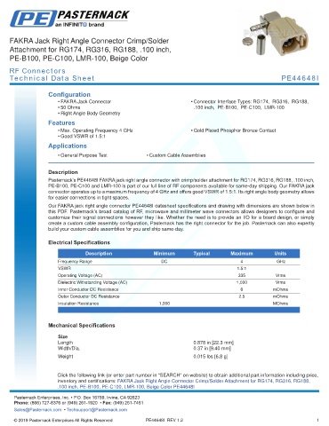 this PDF. Pasternack’s broad catalog of RF, microwave and millimeter wave connectors allows designers to configure and