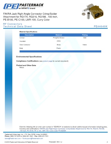 any representation or warranty regarding the suitability of the part described herein for any particular purpose, and Pasternack does not assume any liability arising out of the use of any part or documentation.