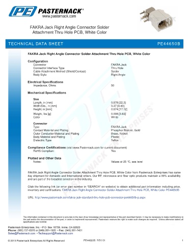 URL: http://www.pasternack.com/fakra-jack-standard-thru-hole-pcb-connector-pe44650b-p.aspx