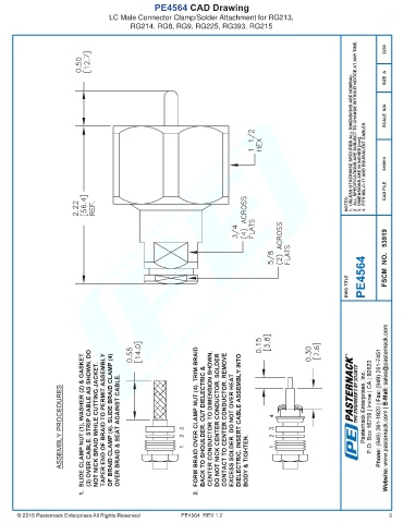 PE4564 CAD Drawing LC Male Connector Clamp/Solder Attachment for RG213, RG214, RG8, RG9, RG225, RG393, RG215 PE4564 REV 1.2 3
