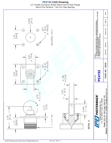 PE4192 CAD Drawing LC Female Connector Solder Attachment 4 Hole Flange Mount Pin Terminal, 1.44 inch Hole Spacing PE4192 REV 1.1 3