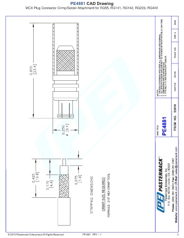PE4881 CAD Drawing MCX Plug Connector Crimp/Solder Attachment for RG55, RG141, RG142, RG223, RG400 PE4881 REV 1.1 3