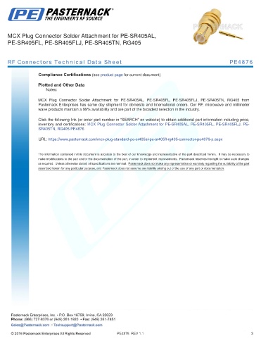 inventory and certifications: MCX Plug Connector Solder Attachment for PE-SR405AL, PE-SR405FL, PE-SR405FLJ, PE-