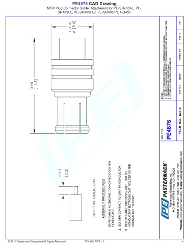 MCX Plug Connector Solder Attachment for PE-SR405AL, PE-