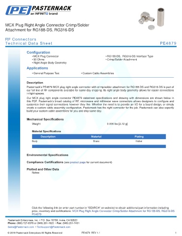 this PDF. Pasternack’s broad catalog of RF, microwave and millimeter wave connectors allows designers to configure and