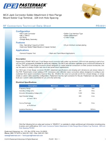 RF Connectors Technical Data Sheet PE4891