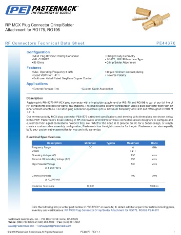 in this PDF. Pasternack’s broad catalog of RF, microwave and millimeter wave connectors allows designers to configure and