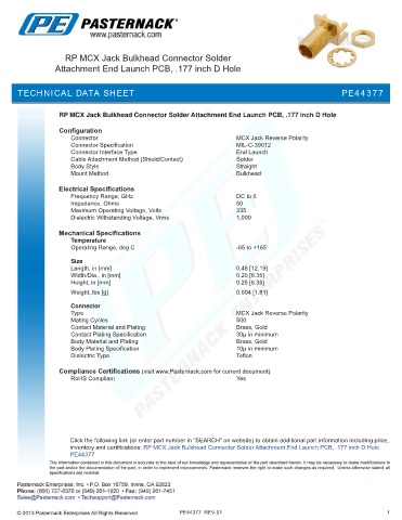 Compliance Certifications (visit www.Pasternack.com for current document)