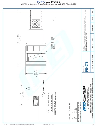 PE4075 CAD Drawing MHV Male Connector Crimp/Solder Attachment for RG59, RG62, RG71 PE4075 REV 1.2 3