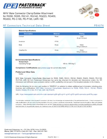 RF Connectors Technical Data Sheet PE4076
