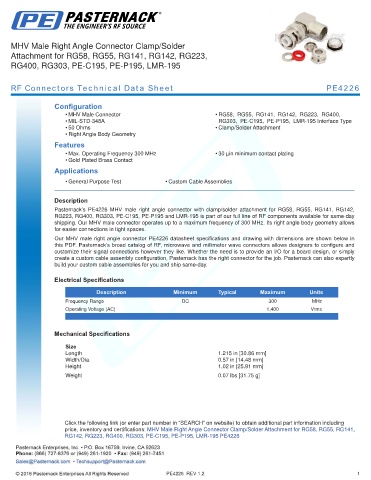 this PDF. Pasternack’s broad catalog of RF, microwave and millimeter wave connectors allows designers to configure and