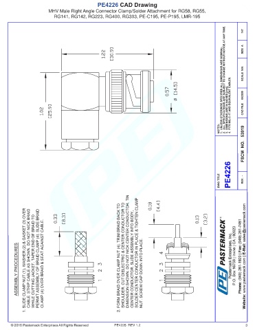 PE4226 CAD Drawing MHV Male Right Angle Connector Clamp/Solder Attachment for RG58, RG55, RG141, RG142, RG223, RG400, RG303, PE-C195, PE-P195, LMR-195 PE4226 REV 1.2 3