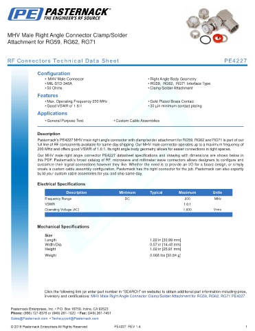 this PDF. Pasternack’s broad catalog of RF, microwave and millimeter wave connectors allows designers to configure and