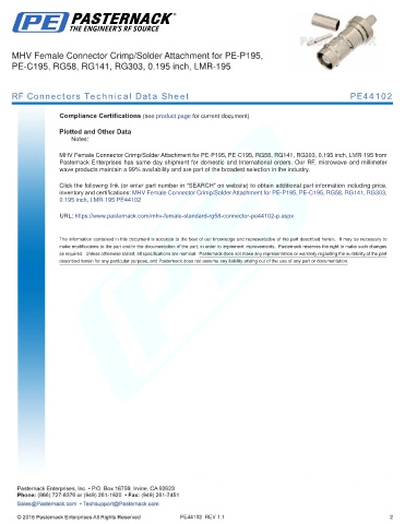 RF Connectors Technical Data Sheet PE44102