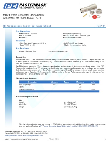 RF Connectors Technical Data Sheet PE4181