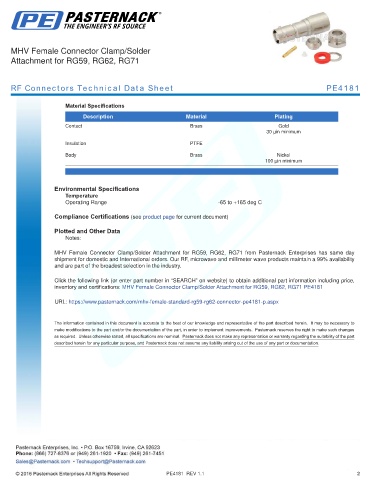 inventory and certifications: MHV Female Connector Clamp/Solder Attachment for RG59, RG62, RG71 PE4181