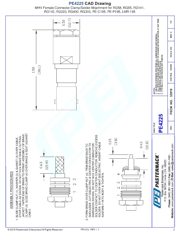 PE4225 CAD Drawing MHV Female Connector Clamp/Solder Attachment for RG58, RG55, RG141, RG142, RG223, RG400, RG303, PE-C195, PE-P195, LMR-195 PE4225 REV 1.1 3