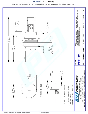 any representation or warranty regarding the suitability of the part described herein for any particular purpose, and Pasternack does not assume any liability arising out of the use of any part or documentation. -