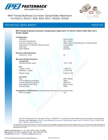 Page 2029 - 1.0/2.3 to SHV RF Connector Datasheets