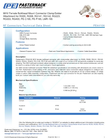 this PDF. Pasternack’s broad catalog of RF, microwave and millimeter wave connectors allows designers to configure and