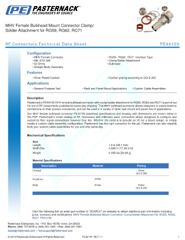this PDF. Pasternack’s broad catalog of RF, microwave and millimeter wave connectors allows designers to configure and