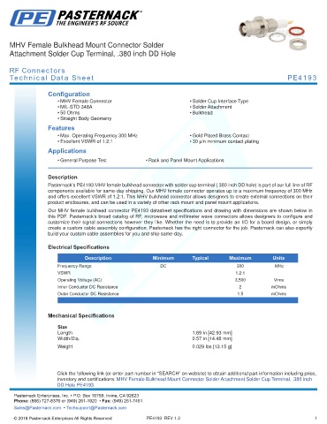 this PDF. Pasternack’s broad catalog of RF, microwave and millimeter wave connectors allows designers to configure and