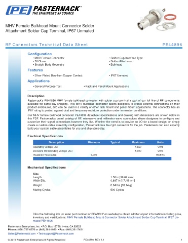 this PDF. Pasternack’s broad catalog of RF, microwave and millimeter wave connectors allows designers to configure and